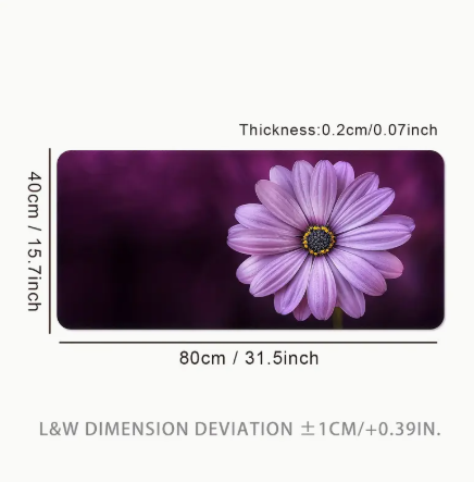Experience ultimate precision and control with the Purple Daisy Large Desk/Mouse Pad! Made with high-quality rubber material, the surface is waterproof and non-slip, ensuring a seamless and smooth glide for all your gaming and work needs. Say goodbye to frustrating slips and slides and hello to improved accuracy and comfort. Elevate your gaming and work experience to the next level with the Purple Daisy Large Desk/Mouse Pad!