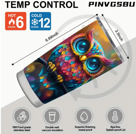 Make every sip a statement with this eye-catching 20oz stainless steel tumbler featuring a whimsical glowing owl and colorful floral backdrop. Designed for both beauty and performance, it keeps your drinks at the perfect temperature while turning heads. Whether it's a thoughtful gift or your new favorite tumbler, it’s ideal for teachers, friends, and family.