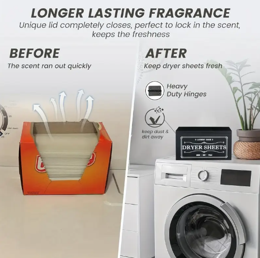 Tired of messy laundry rooms? Elevate your space with this sleek and functional Wooden Dryer Sheet Holder! Featuring a rustic black finish, a smooth hinged lid, and polished interior edges, this box holds up to 180 standard dryer sheets while keeping them easily accessible and dust-free. It’s the perfect combination of farmhouse charm and practicality—just lift the lid and grab a sheet, no fuss required.